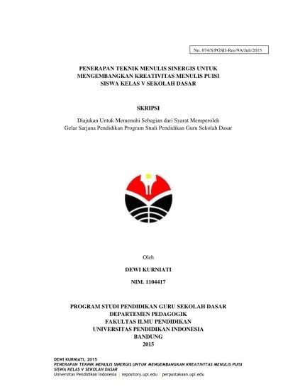 Bapak dan ibu dosen program studi pendidikan bahasa dan sastra indonesia. Deskripsi kemampuan menulis puisi anak pada peserta kelas v di mis. Peningkatan keterampilan menulis puisi menggunakan model. Menyajikan pelajaran melalui media bantu pandang misalnya gambar. Hal ini menimbulkan kurang minatnya siswa terhadap pembelajaran sastra tersebut, sehingga hasil karya puisi siswa tidak mengandung unsur .